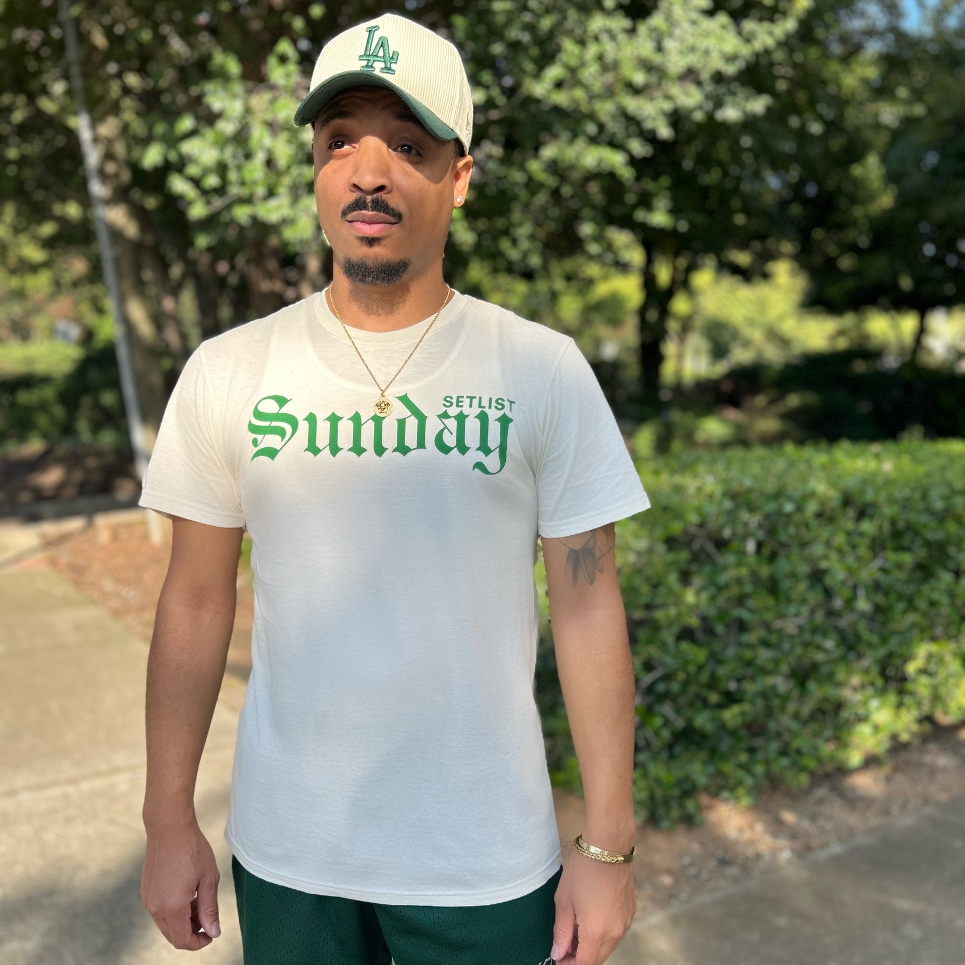 Step into the very first piece of official Sunday Setlist merch with this cream tee featuring bold green lettering. On the back, you’ll find the powerful line: “If I be lifted up, I will draw all men unto me.” A wearable statement of faith and music, designed to feel as timeless as the message itself.